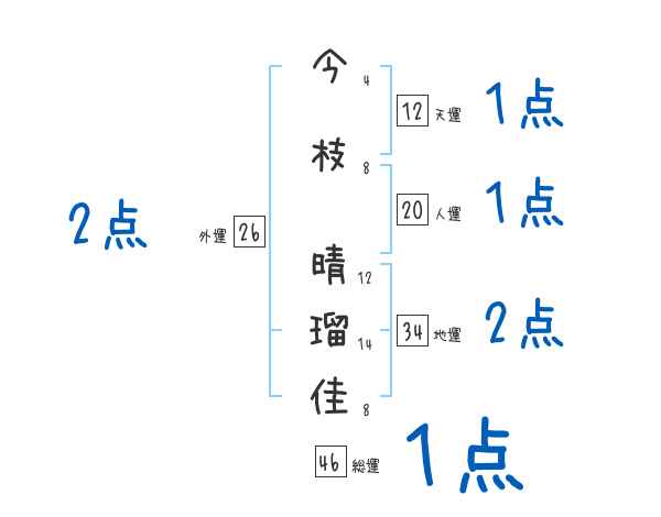 外運![]() | 今枝晴瑠佳さんの外運は26画の2つ星!波瀾万丈かも。信頼できる人を大事にしましょう。 生活面を象徴する運勢です。外部から受ける影響力を表し、結婚運、家庭運や職場、環境への順応性を表します。 |