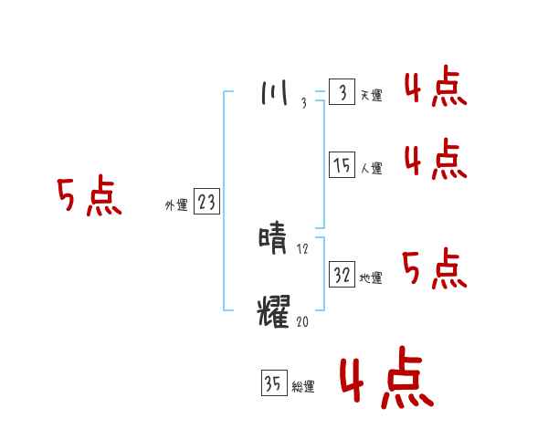 天運![]() | 川晴耀さんの天運は3画の4つ星!活動的で才能に恵まれ、多くの信頼を得る。希望に満ち成長する。 家系が持つ宿命的な運勢を表します。祖先から受け継いだ苗字ですので自分の力が及びません。家柄を象徴します。 |
