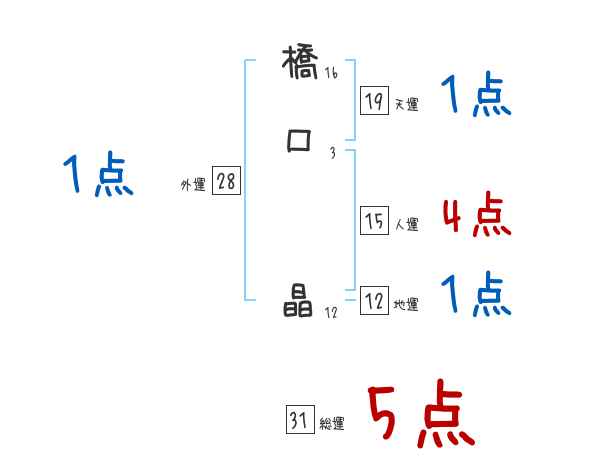 橋口晶さんの画数の鑑定結果