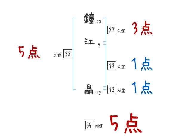 鐘江晶さんの画数の鑑定結果