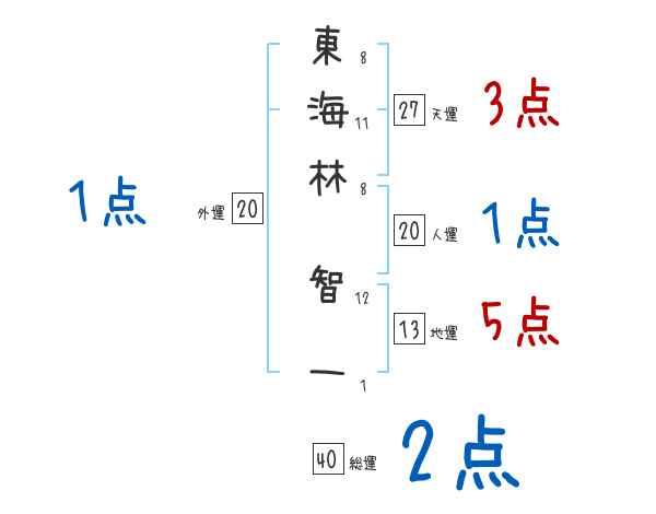 人運![]() | 東海林智一さんの人運は20画の1つ星!社交が苦手。人とは違った才能があり波乱万丈な人生かも。 性格や才能などを表す2番目に重要な運勢です。人間関係や協調性、社会的な成功に影響します。主に20歳から50歳ぐらいまでの中年期の運勢を表します。 |