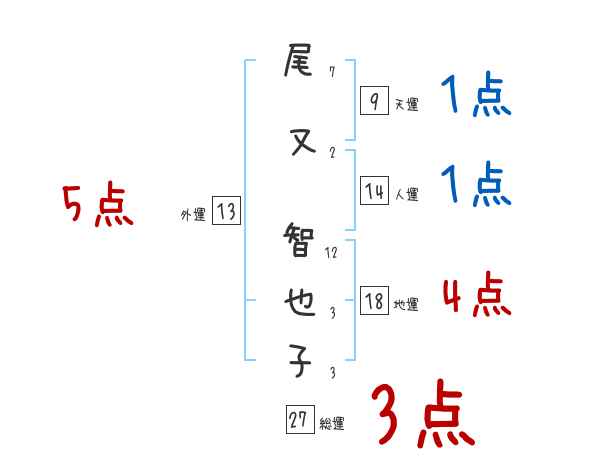 尾又智也子さんの画数の鑑定結果