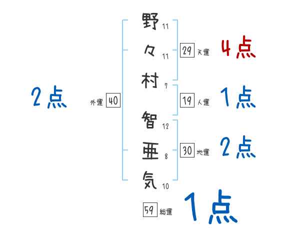 野々村智亜気さんの画数の鑑定結果