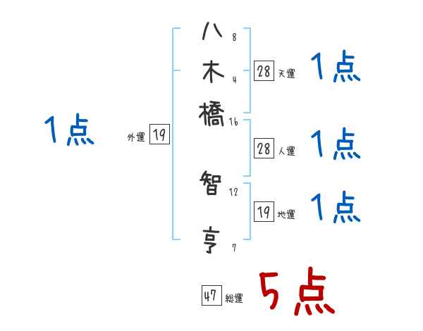 八木橋智亨さんの画数の鑑定結果
