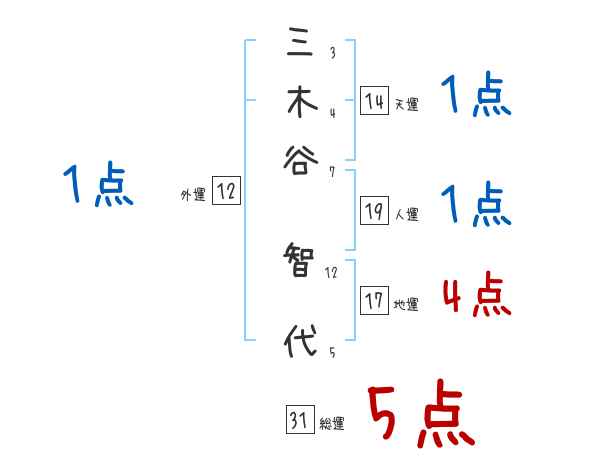 三木谷智代さんの画数の鑑定結果