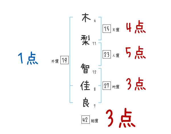 外運![]() | 木梨智佳良さんの外運は19画の1つ星!優れた才能を持ちますが、協調性が足りないことも。周りの人と協力する事を意識しましょう。 生活面を象徴する運勢です。外部から受ける影響力を表し、結婚運、家庭運や職場、環境への順応性を表します。 |
