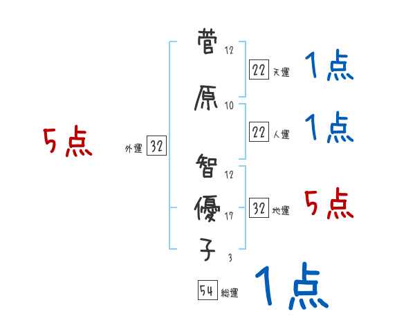 菅原智優子さんの画数の鑑定結果