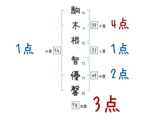 駒木根智優馨さんの画数の鑑定結果