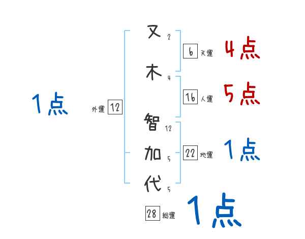 天運![]() | 又木智加代さんの天運は6画の4つ星!慎重な努力家で信頼を得る。誠実な精神で向上心に優れる。 家系が持つ宿命的な運勢を表します。祖先から受け継いだ苗字ですので自分の力が及びません。家柄を象徴します。 |