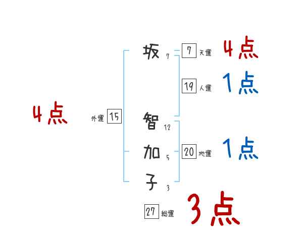 坂智加子さんの画数の鑑定結果