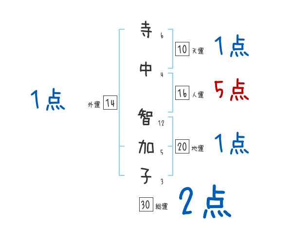寺中智加子さんの画数の鑑定結果