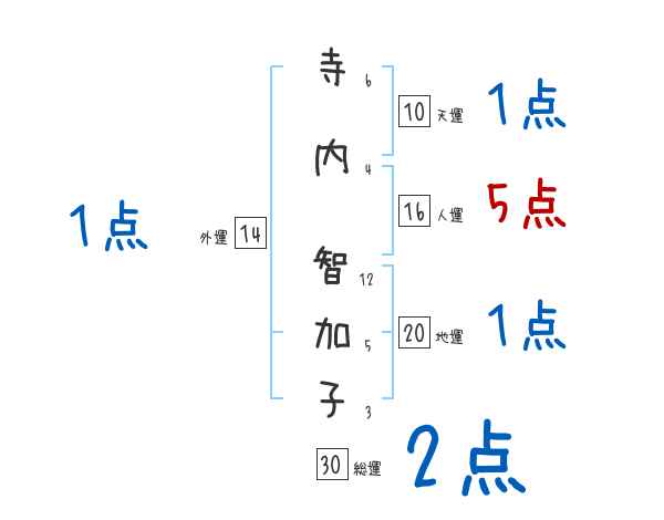 寺内智加子さんの画数の鑑定結果