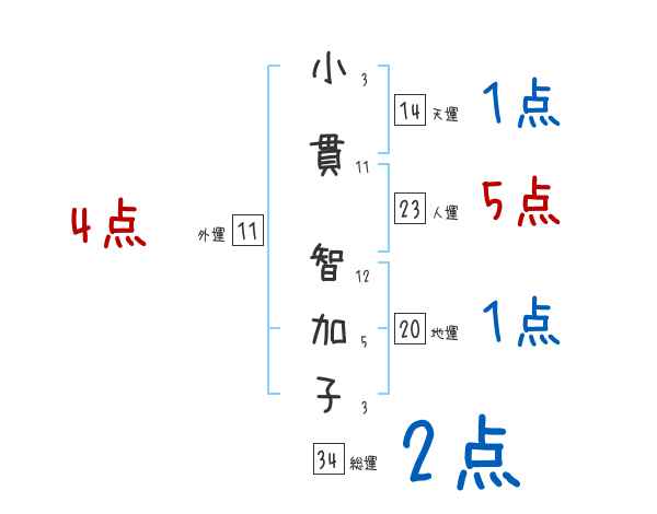 小貫智加子さんの画数の鑑定結果