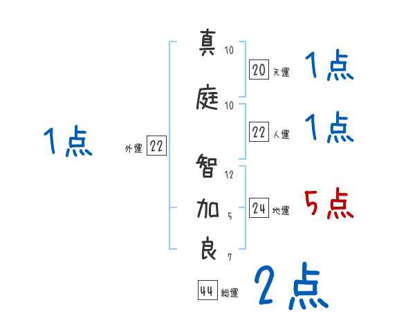 真庭智加良さんの画数の鑑定結果