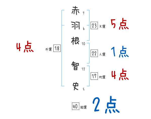 人運![]() | 赤羽根智史さんの人運は22画の1つ星!努力することが苦手ないっぽう手先が器用。芸術性にも優れる。 性格や才能などを表す2番目に重要な運勢です。人間関係や協調性、社会的な成功に影響します。主に20歳から50歳ぐらいまでの中年期の運勢を表します。 |