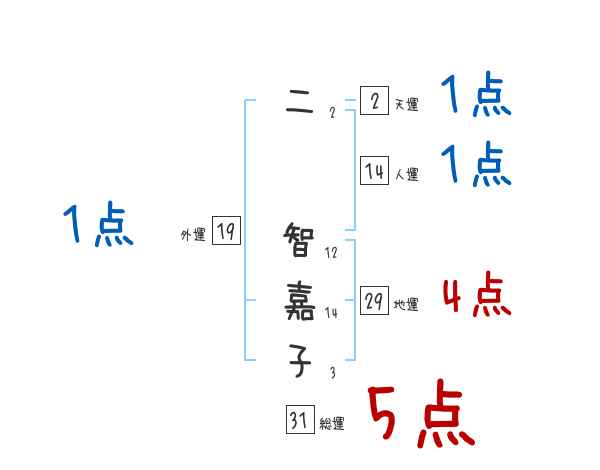 地運![]() | 二智嘉子さんの地運は29画の4つ星!完全主義で才能がある。厳格な心の持ち主。 個性を表す基礎的な運勢です。性格形成や対人関係、行動力など家庭環境に影響されます。主に誕生してから20歳くらいまでの若年期の運勢を表します。 |