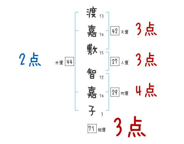 渡嘉敷智嘉子さんの画数の鑑定結果