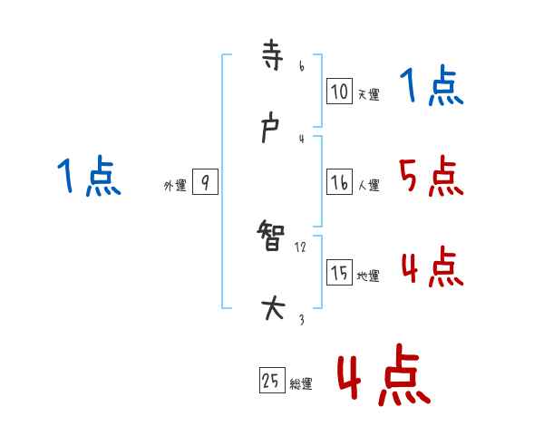 寺戸智大さんの画数の鑑定結果