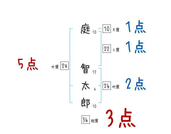 庭智太郎さんの画数の鑑定結果