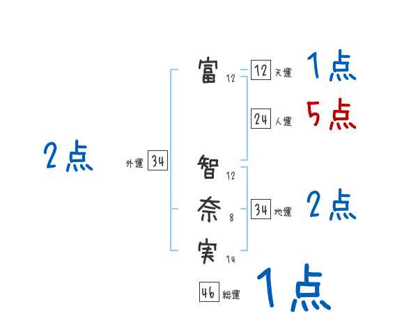 富智奈実さんの画数の鑑定結果