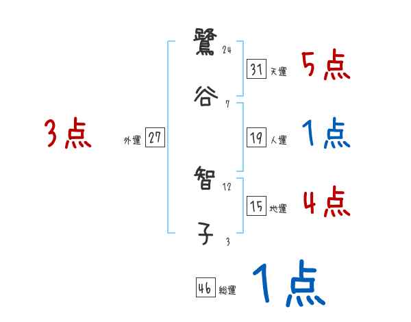 鷺谷智子さんの画数の鑑定結果