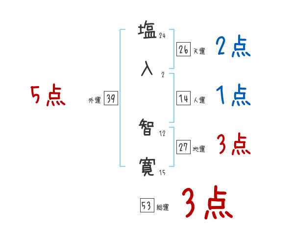 塩入智寛さんの画数の鑑定結果