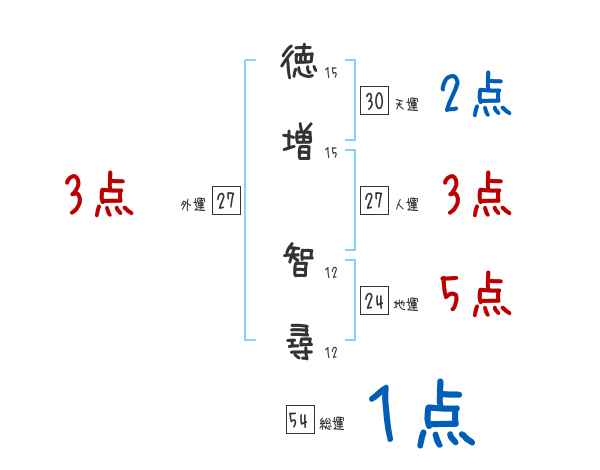 徳増智尋さんの画数の鑑定結果