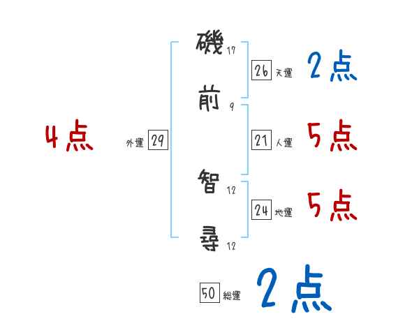 磯前智尋さんの画数の鑑定結果