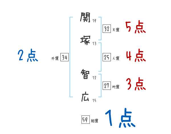 関塚智広さんの画数の鑑定結果