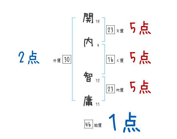 外運![]() | 関内智庸さんの外運は30画の2つ星!浮き沈みの激しさに注意しましょう。 生活面を象徴する運勢です。外部から受ける影響力を表し、結婚運、家庭運や職場、環境への順応性を表します。 |