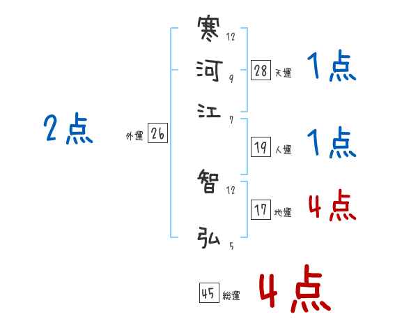 外運![]() | 寒河江智弘さんの外運は26画の2つ星!波瀾万丈かも。信頼できる人を大事にしましょう。 生活面を象徴する運勢です。外部から受ける影響力を表し、結婚運、家庭運や職場、環境への順応性を表します。 |