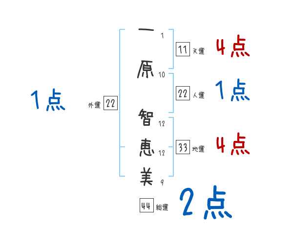 天運![]() | 一原智恵美さんの天運は11画の4つ星!着実に富や地位を得る幸運な人生。 家系が持つ宿命的な運勢を表します。祖先から受け継いだ苗字ですので自分の力が及びません。家柄を象徴します。 |