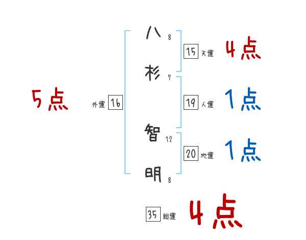 八杉智明さんの画数の鑑定結果
