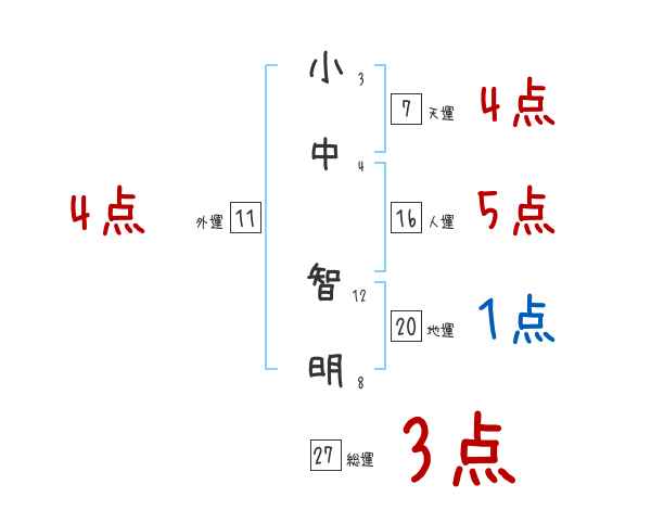 小中智明さんの画数の鑑定結果