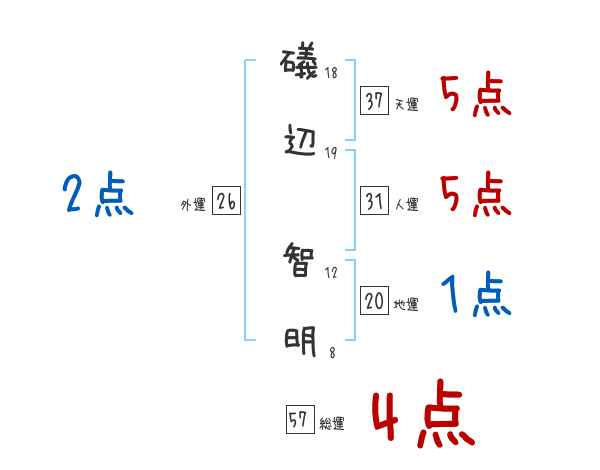 礒辺智明さんの画数の鑑定結果