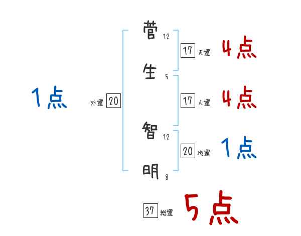 総運![]() | 菅生智明さんの総運は37画の5つ星!努力家で順応性に優れる。現実的な考え方ができ忠実に物事をこなす。 あなたの人生を表す1番重要な運勢です。生涯を通じて影響する総合運となり、主に50歳以降の晩年期に影響を及ぼします。 |