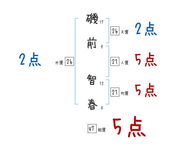 磯前智春さんの画数の鑑定結果