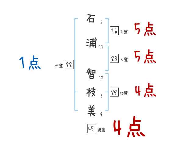 外運![]() | 石浦智枝美さんの外運は22画の1つ星!努力することが苦手ないっぽう手先が器用。芸術性にも優れる。 生活面を象徴する運勢です。外部から受ける影響力を表し、結婚運、家庭運や職場、環境への順応性を表します。 |