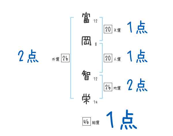 外運![]() | 富岡智栄さんの外運は26画の2つ星!波瀾万丈かも。信頼できる人を大事にしましょう。 生活面を象徴する運勢です。外部から受ける影響力を表し、結婚運、家庭運や職場、環境への順応性を表します。 |