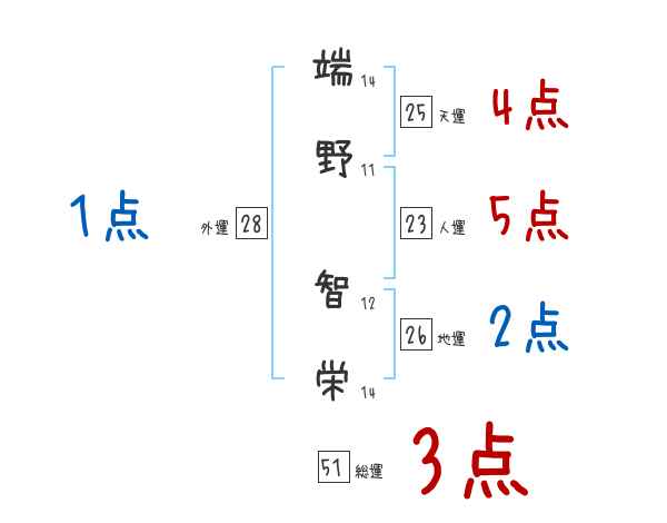 外運![]() | 端野智栄さんの外運は28画の1つ星!家庭環境に注意。スポーツで活躍できる能力があるかも。 生活面を象徴する運勢です。外部から受ける影響力を表し、結婚運、家庭運や職場、環境への順応性を表します。 |