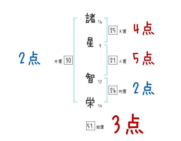 人運![]() | 諸星智栄さんの人運は21画の5つ星!統率力がある。独立し成功する。名誉を手に入れる。 性格や才能などを表す2番目に重要な運勢です。人間関係や協調性、社会的な成功に影響します。主に20歳から50歳ぐらいまでの中年期の運勢を表します。 |