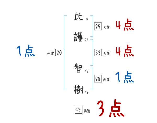 人運![]() | 比護智樹さんの人運は33画の4つ星!権力志向でプライドが高い。勇気があり運を切り開き成功する。 性格や才能などを表す2番目に重要な運勢です。人間関係や協調性、社会的な成功に影響します。主に20歳から50歳ぐらいまでの中年期の運勢を表します。 |