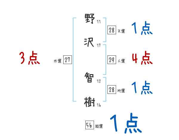 野沢智樹さんの画数の鑑定結果
