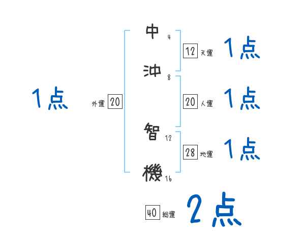 地運![]() | 中沖智機さんの地運は28画の1つ星!家庭環境に注意。スポーツで活躍できる能力があるかも。 個性を表す基礎的な運勢です。性格形成や対人関係、行動力など家庭環境に影響されます。主に誕生してから20歳くらいまでの若年期の運勢を表します。 |