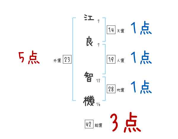 江良智機さんの画数の鑑定結果