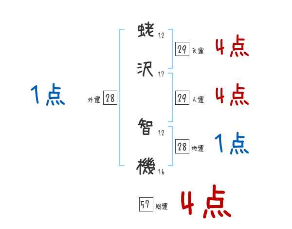 蛯沢智機さんの画数の鑑定結果