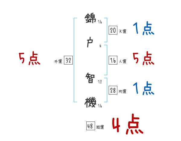 外運![]() | 錦戸智機さんの外運は32画の5つ星!柔軟性があり成功する。チャンスが多く金運が良い。 生活面を象徴する運勢です。外部から受ける影響力を表し、結婚運、家庭運や職場、環境への順応性を表します。 |