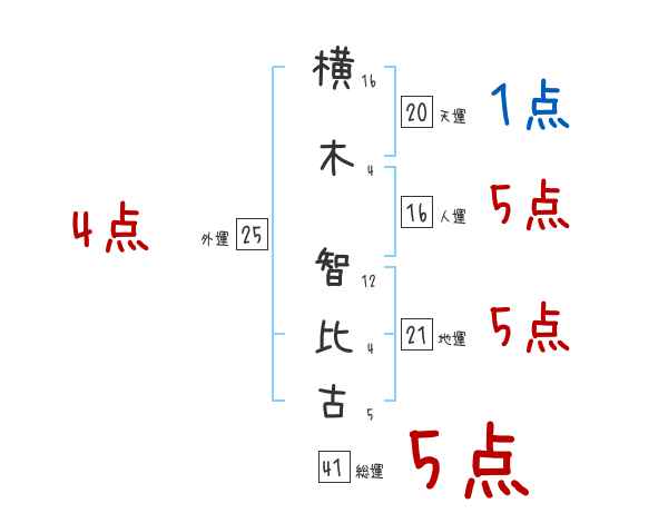 人運![]() | 横木智比古さんの人運は16画の5つ星!人望が厚く大きく発展する。逆転成功が見える。 性格や才能などを表す2番目に重要な運勢です。人間関係や協調性、社会的な成功に影響します。主に20歳から50歳ぐらいまでの中年期の運勢を表します。 |