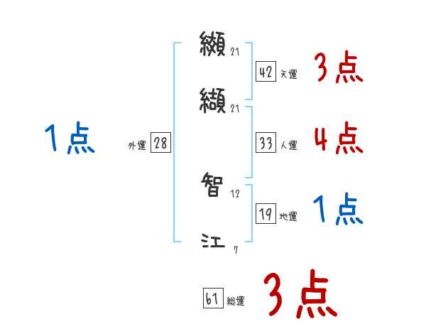 外運![]() | 纐纈智江さんの外運は28画の1つ星!家庭環境に注意。スポーツで活躍できる能力があるかも。 生活面を象徴する運勢です。外部から受ける影響力を表し、結婚運、家庭運や職場、環境への順応性を表します。 |