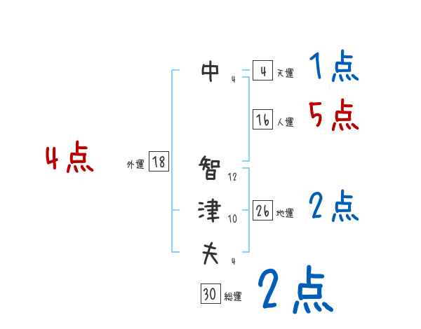天運![]() | 中智津夫さんの天運は4画の1つ星!感情が不安定で苦労するかも。周囲との協調を心掛けましょう。 家系が持つ宿命的な運勢を表します。祖先から受け継いだ苗字ですので自分の力が及びません。家柄を象徴します。 |